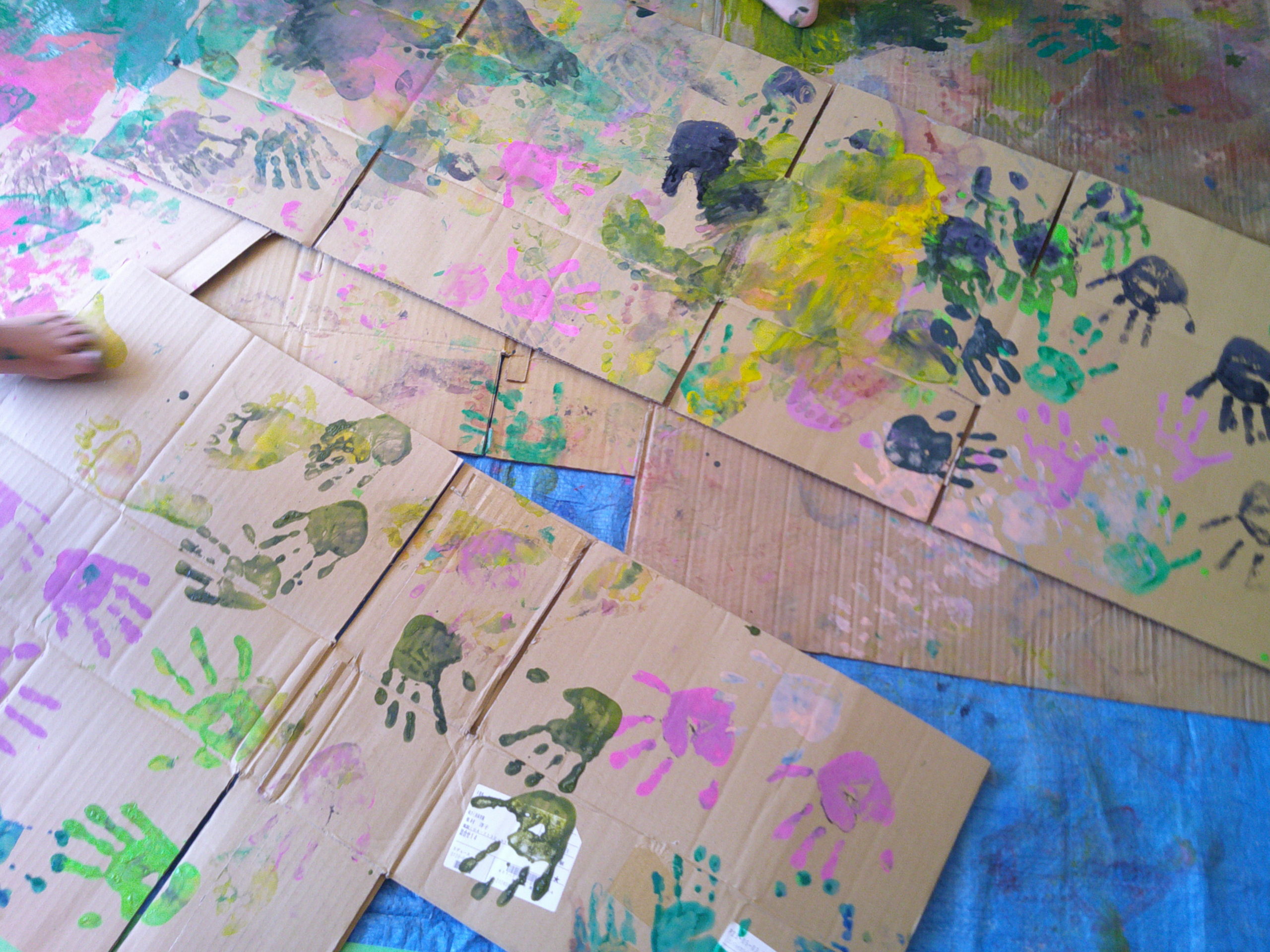 お天気の中、絵の具あそびをしました。