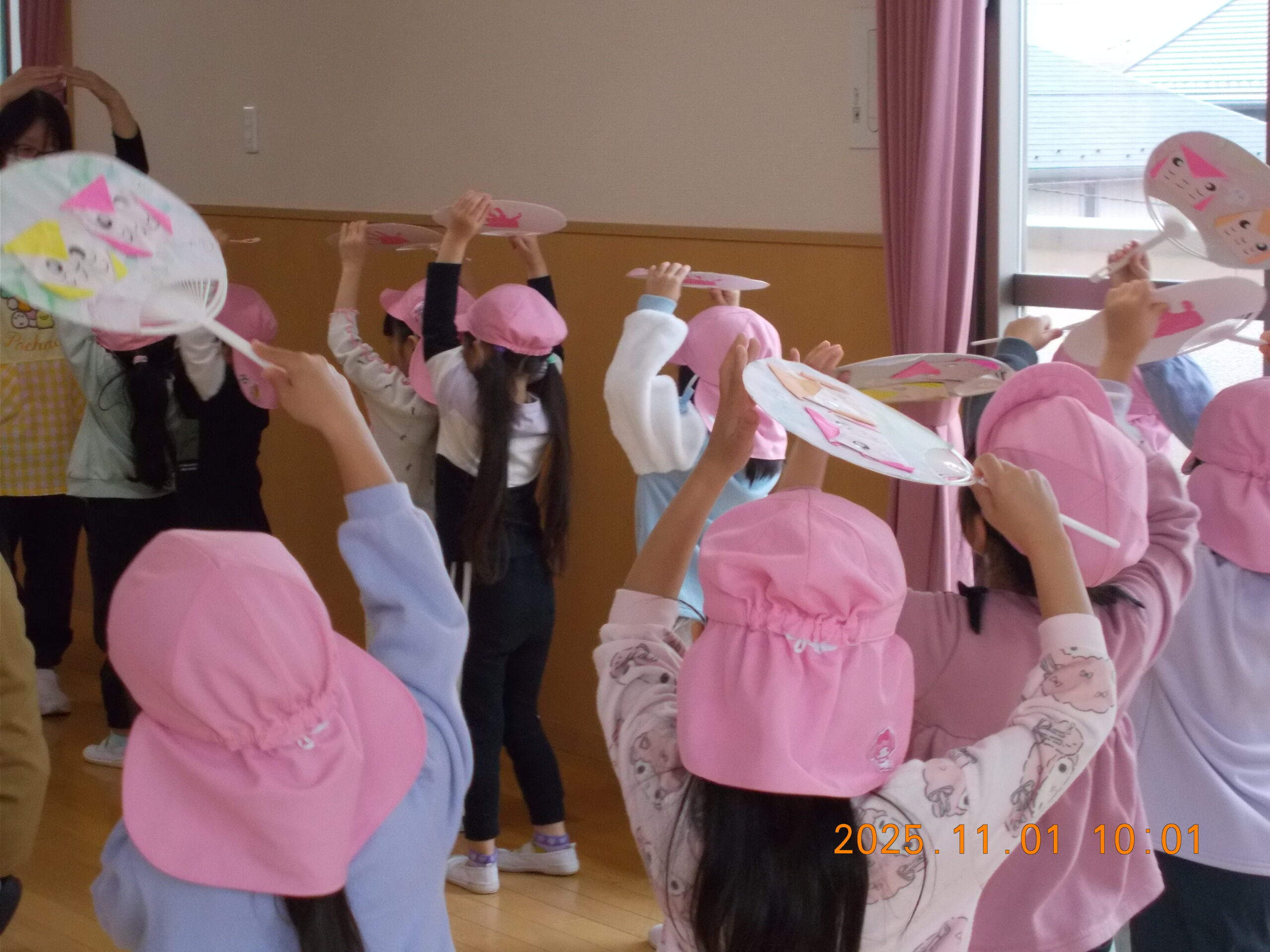 10月に秋祭りがありました。 みんなで盆踊りを踊ったり、ゲームあそびをしました。