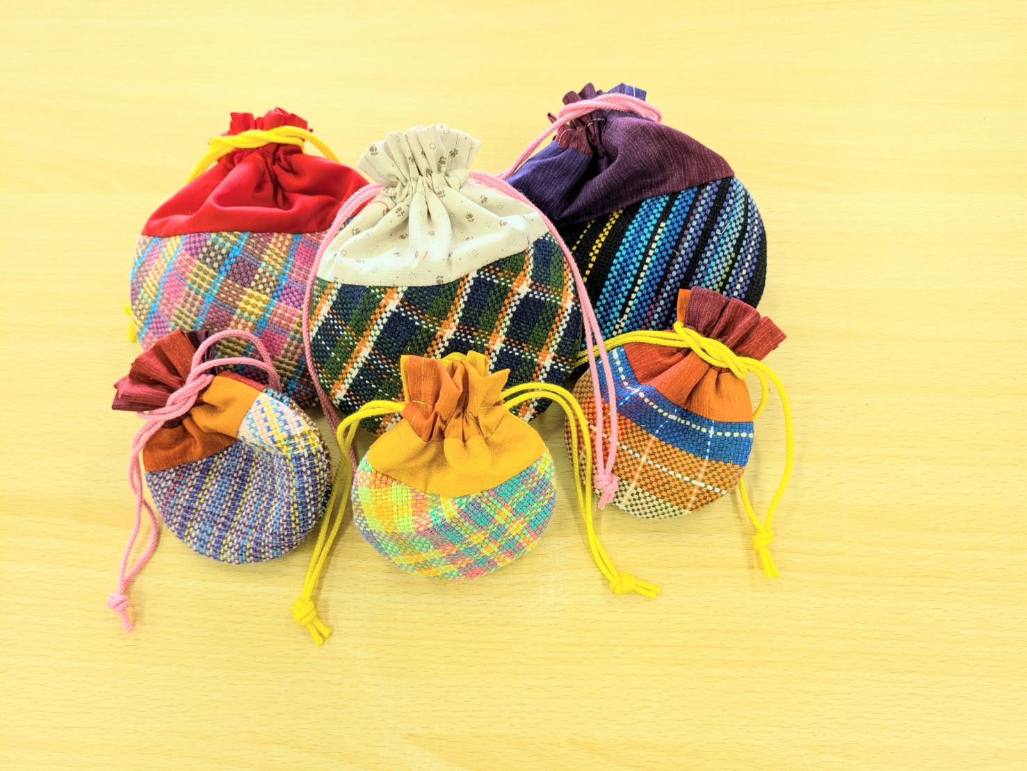 機織班では新商品【まあるい巾着セット】が完成し、店頭や委託先での販売が始まりました😆!
