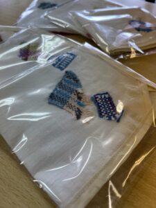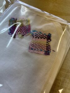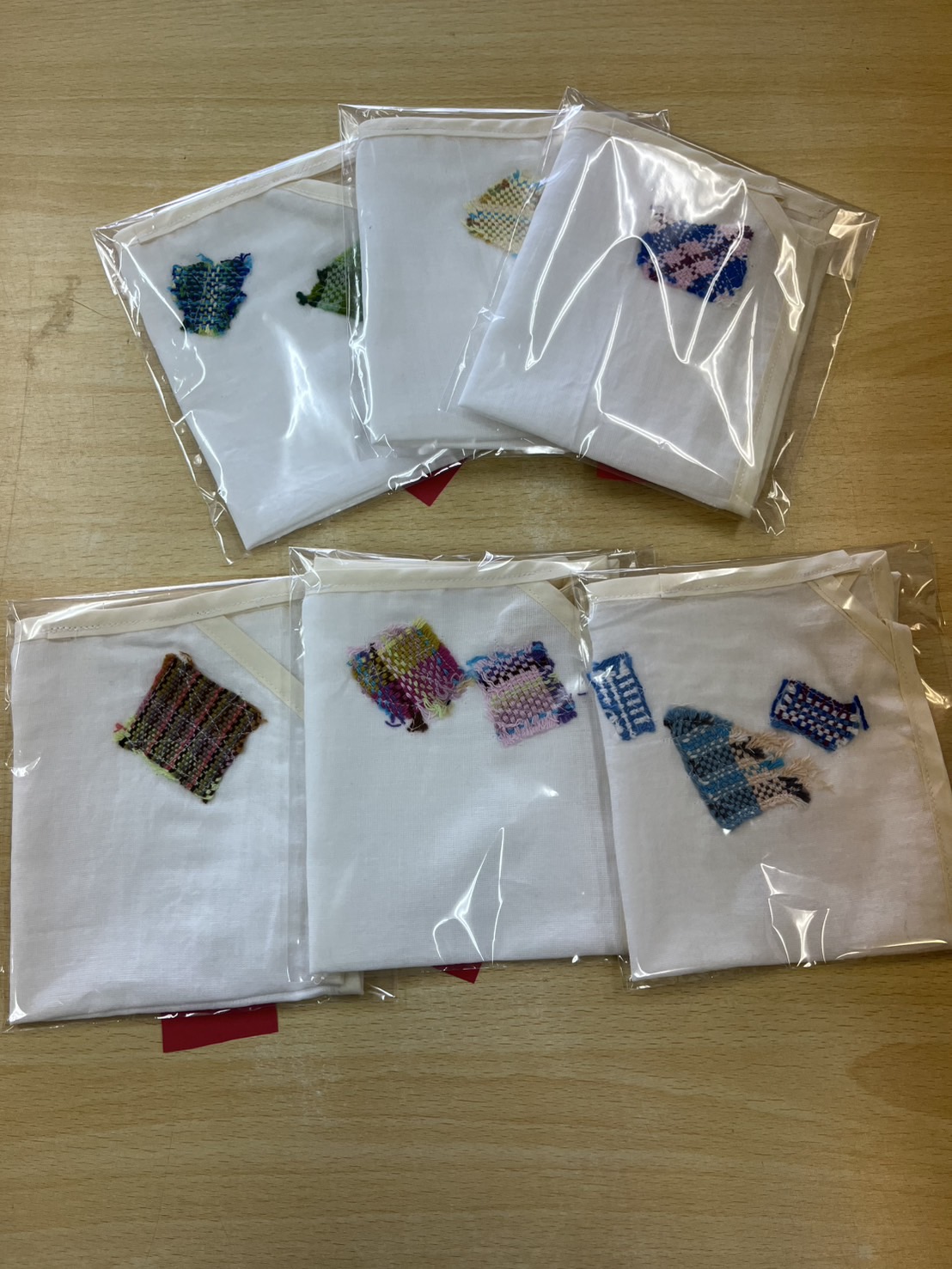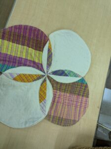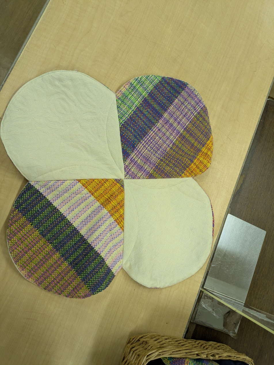 織の生地と無地の生地を組み合わせて、色合いは可愛く出来たかなということですが、サイズ感が失敗😢😞