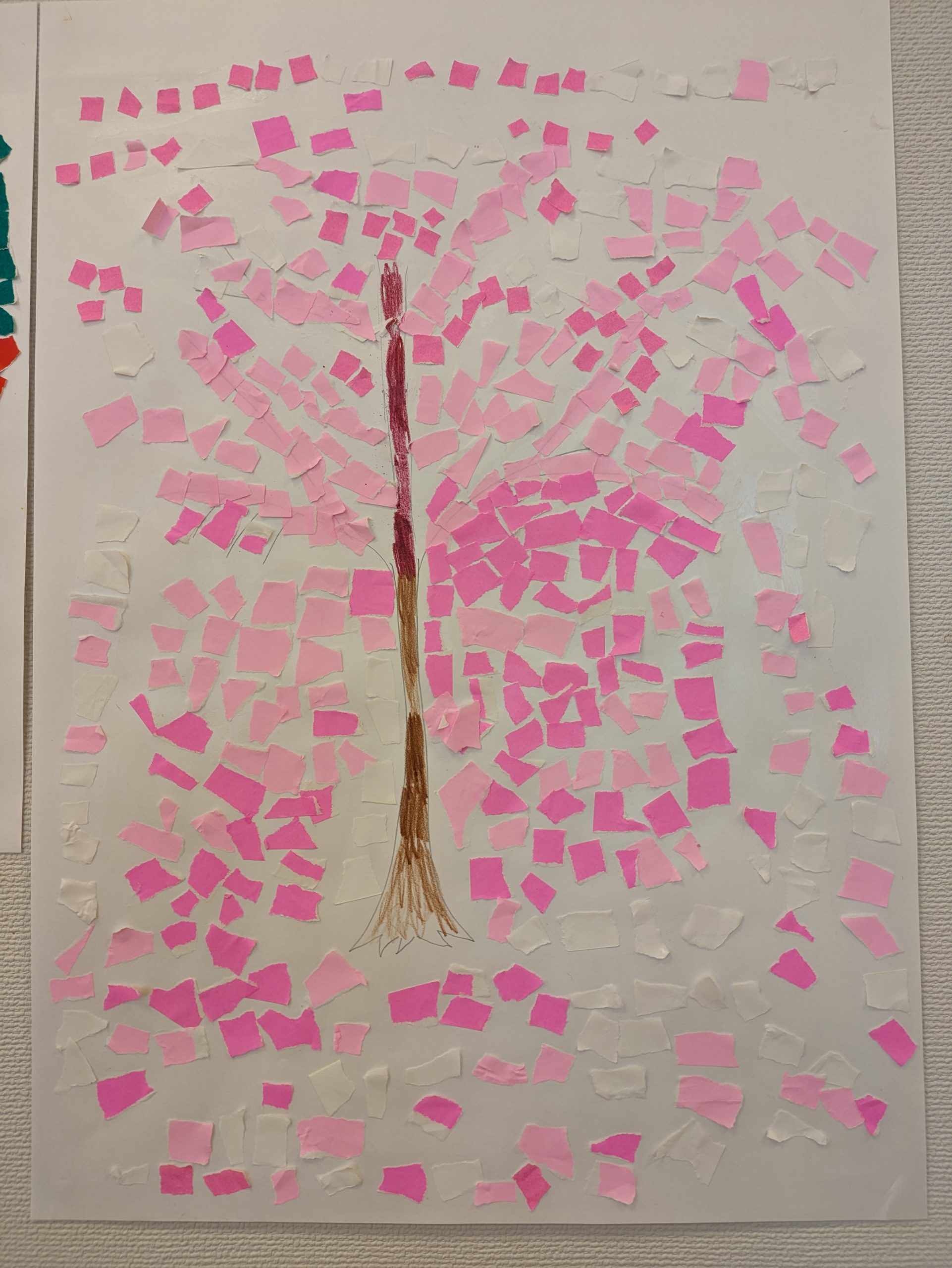 今月は【桜の木】の貼り絵をしてみました🌸🌸🌸